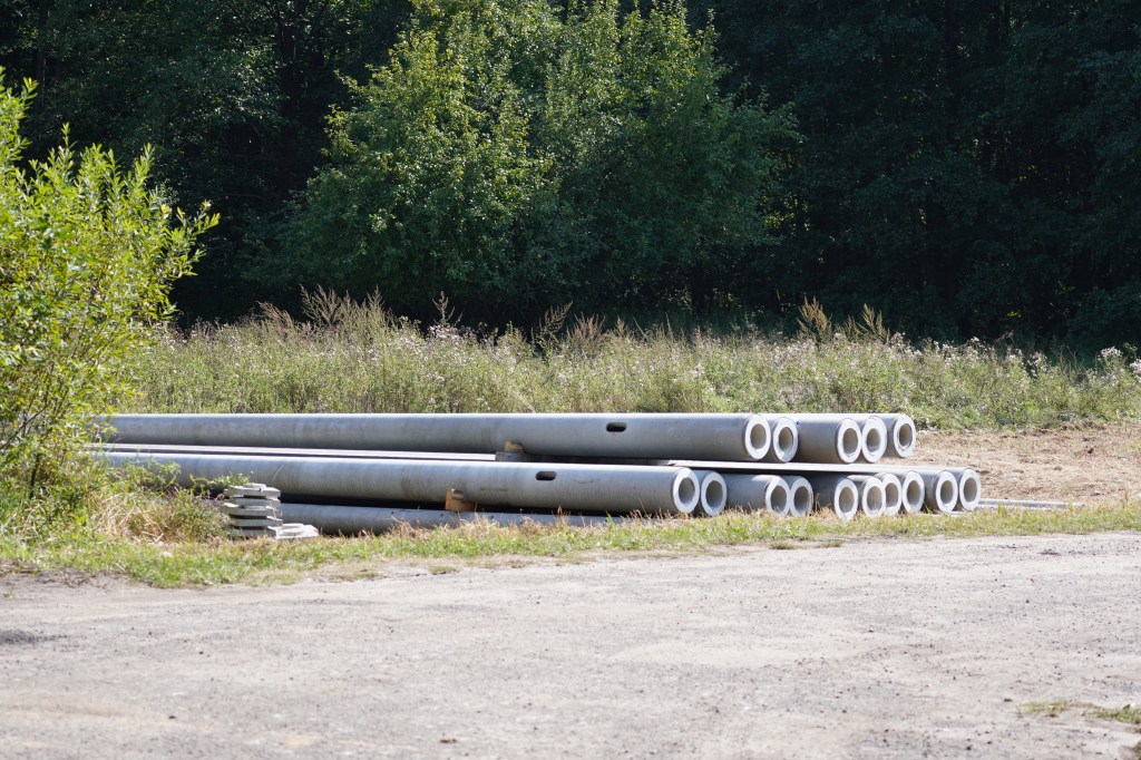 Concrete polls lying waiting to be installed